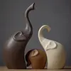 1set Nordic-Style Large Ceramic Elephant Family Figurine Set Matte Finish Animal Sculpture Entryway Decoration Unique Gift Idea